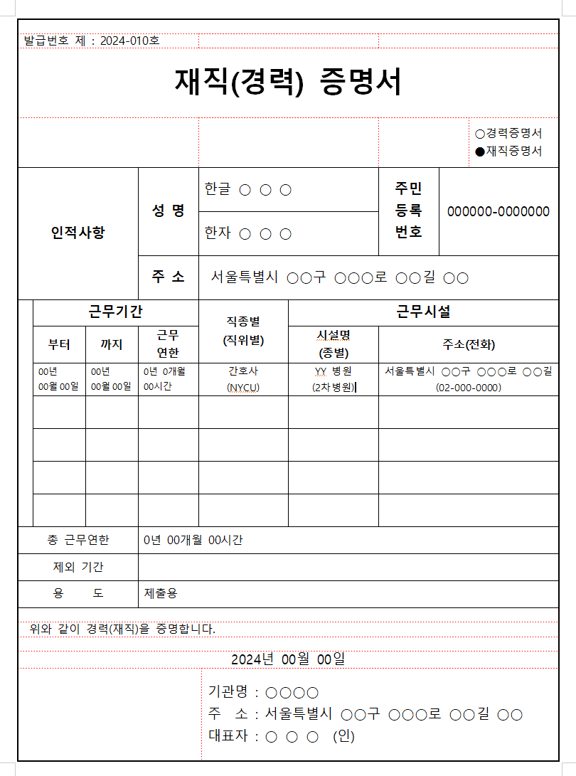 재직증명서 양식 무료다운 - 한글,워드 모두 제공