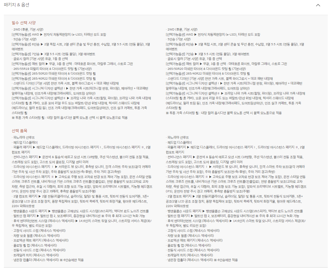 GV80 2.5 / 3.5패키지와 옵션